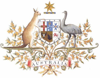 Huy hiệu của Úc – biểu tượng chính thức của Chính phủ Úc – được vua George V cấp vào năm 1912. Huy hiệu bao gồm một chiếc khiên có chứa phù hiệu của sáu nước. Nâng huy hiệu là 2 con vật bản địa của Úc – một con Kangaroo và một Emu. Một cây bản địa có hoa màu vang là Wattle cũng xuất hiện trong thiết kế.